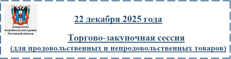 Департамент потребительского рынка Ростовской области приглашает 22 декабря 2025 года с 14.00 до 16.00 принять участие в торгово-закупочной сессии.